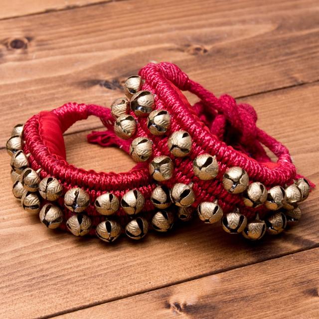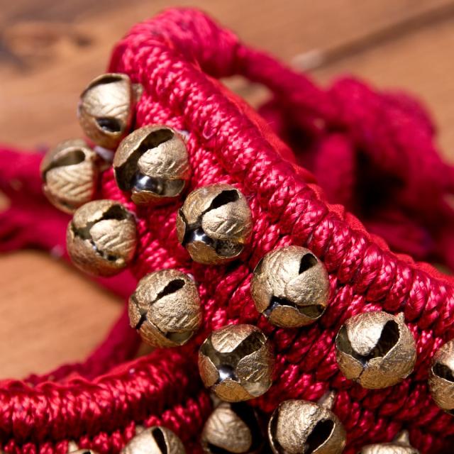 赤紐グングル【両足用-2本セット】- 2列 / グングルベルト、ベル、グングル、インド 打楽器、打楽器、民族楽器、インド舞踊、カタック、バラタナティヤム、オリッシー、鈴、ダンス 民族楽器 【インドとアジアン民族楽器