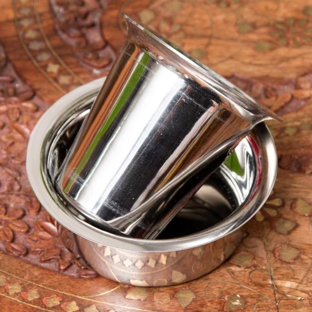 南インドのコーヒーカップとソーサーセット〔直径:約7.7cm〕 / カップ、コーヒー カップ、コップ、コーヒー、ステンレス 食器、コーヒー インド アジアの食材 【インドとアジアン食品・食材