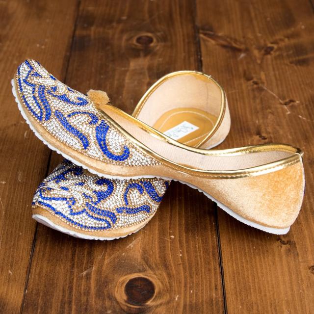 ゴージャス ラインストーンのマハラニフラットシューズ / パンプス 靴 ペッタンコ靴 インド TIRAKITA(ティラキタ) アジア サンダル レディース エスニック衣料 アジアンファッション エスニックファッション