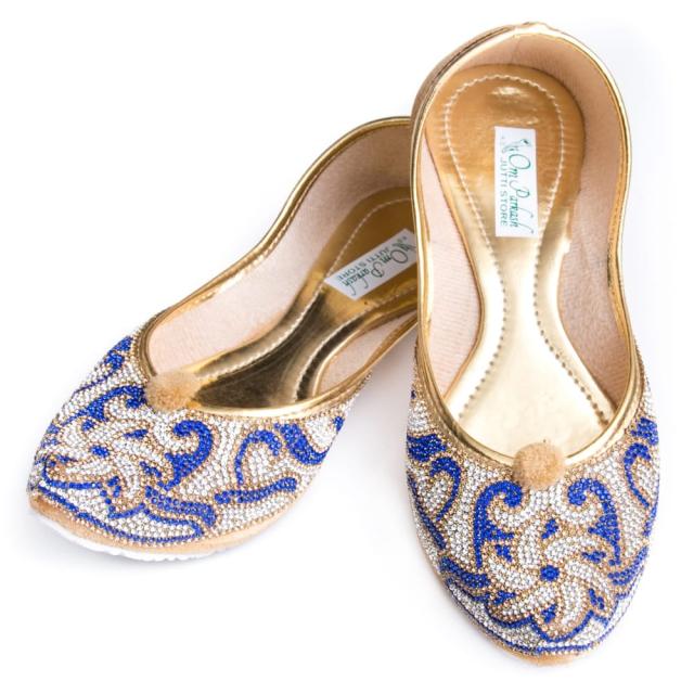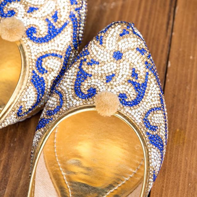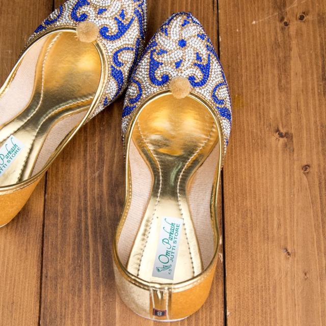 ゴージャス ラインストーンのマハラニフラットシューズ / フラットシューズ、パンプス、靴、ペッタンコ靴、インド 靴、サリー、クルティ、チュリダール、パンジャビドレス TIRAKITA(ティラキタ) エスニック衣料 【エスニック・アジアン衣料