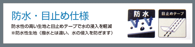 ※防水生地とは、裏面にポリウレタン生地を使用することにより、水を通しにくくする生地の事です。