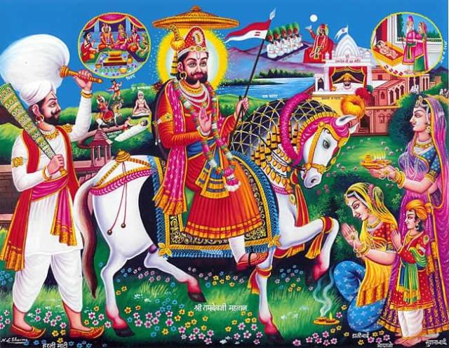ラーマデーヴァ・マハーラージャの肖像画。槍を持ち、白馬にまたがった姿は堂々としていて力強いですね。
