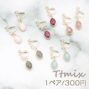 天然石イヤリング 3mm石付 ネジバネ式イヤリング オーバル【1ペア】