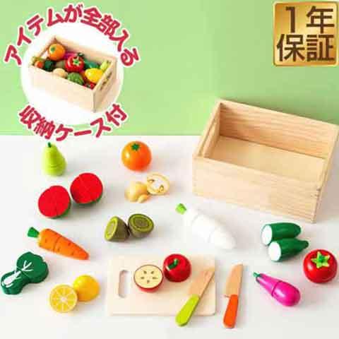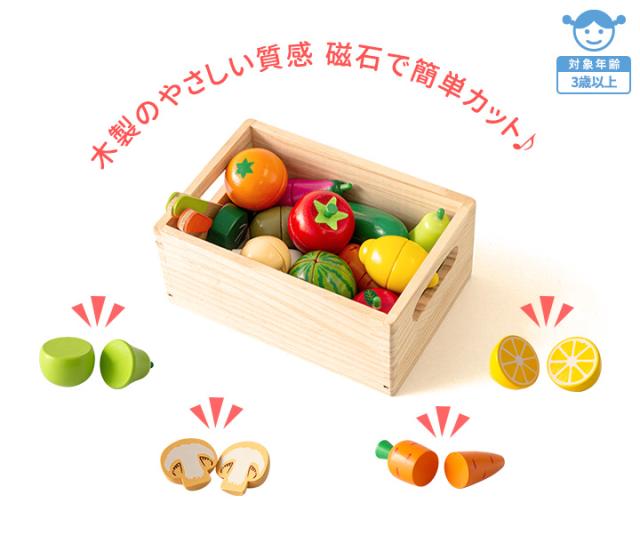 ままごと フルーツ野菜 食材 セット 木製 サラダ 野菜 フルーツ 詰め合わせ 16種類セット まな板 包丁 ナイフ 木箱付き マグネット 磁石 切れる おままごと ままごとセット おもちゃ 知育玩具 食料品 食品 誕生日 クリスマス 1年保証 送料無料