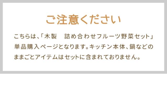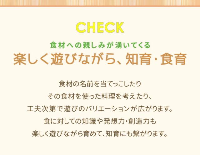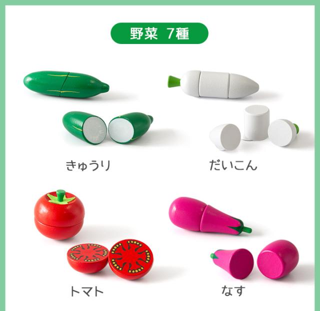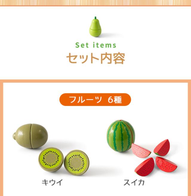 | セット内容: 【フルーツ】:キウイ/スイカ/みかん/洋ナシ/リンゴ/レモン 【野菜】:きゅうり/だいこん/トマト/なす/にんじん/はくさい/マッシュルーム 【キッチンアイテム】:まな板/ほうちょう×2本 |