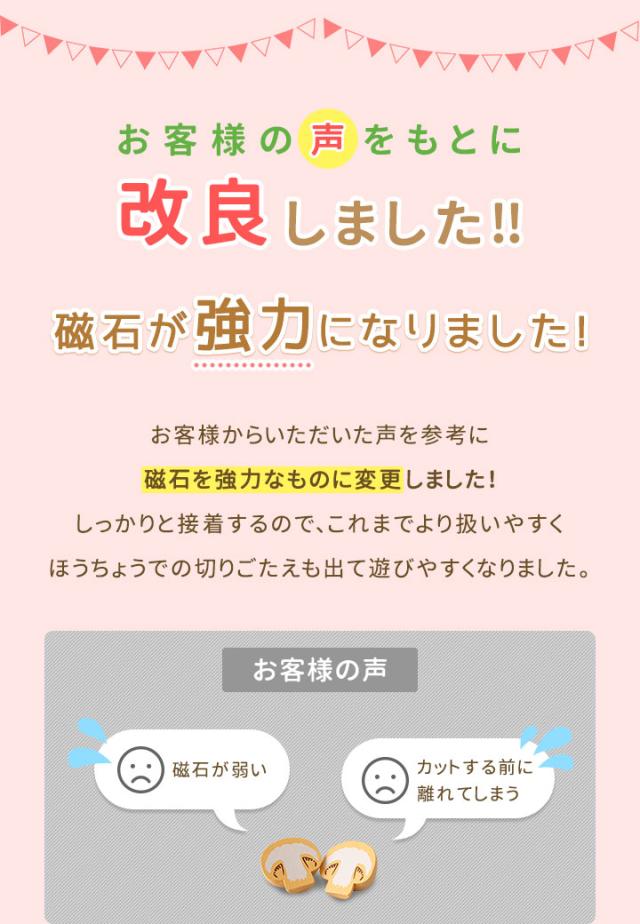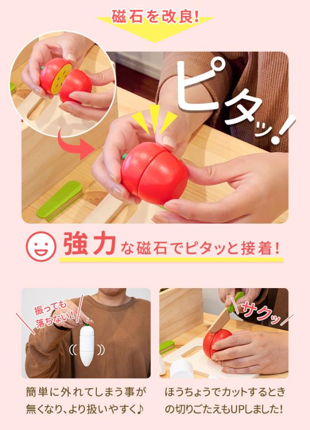 - 磁石が強力になったみたいやけど、大根、トマト、りんごは弱く持つと落ちる… 磁石は埋め込み式だし、大きさもあるので誤飲の心配はないという点は良いと思う。 あとは箱に蓋があれば尚良し!