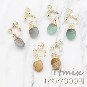 天然石イヤリング 4mm玉 ネジバネ式イヤリング 雫型【1ペア】