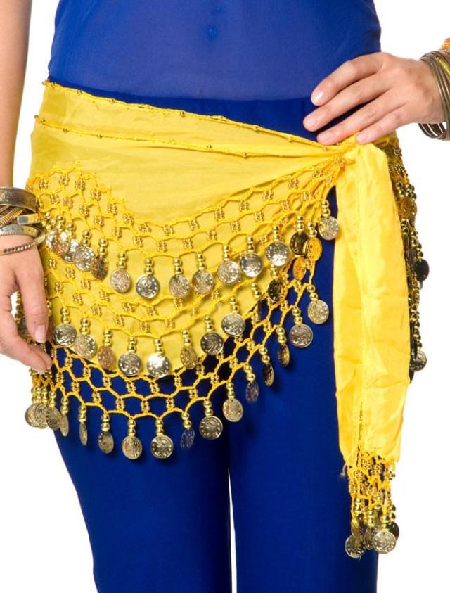 ベリーダンス ヒップスカーフ 150コイン - 黄色 / ベリー 衣装、ヒップスカーフ群舞 ベリー 【ベリーダンス