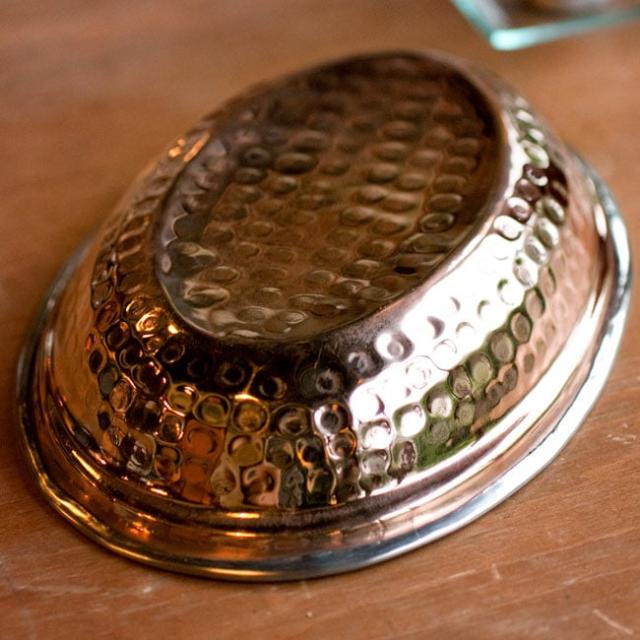 カレーなどを入れるのに便利な、オーバル型プレートです!内側はステンレスで、外側は銅の二重構造。冷めにくく見た目も高級感があります!