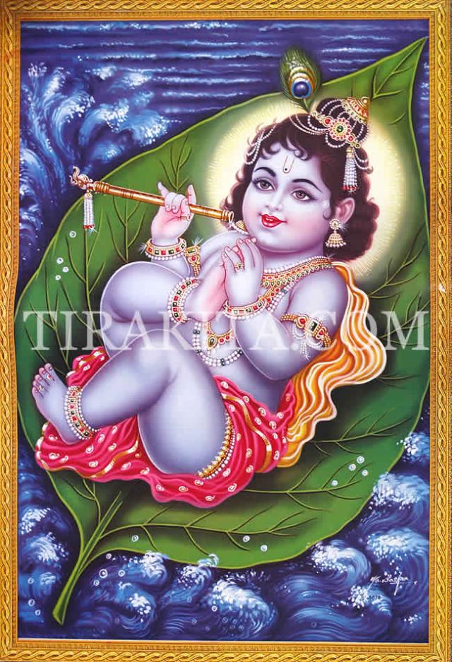 【特大ポスター】葉に乗ったベイビークリシュナ / インド 神様 本 印刷物 ステッカー ポストカード