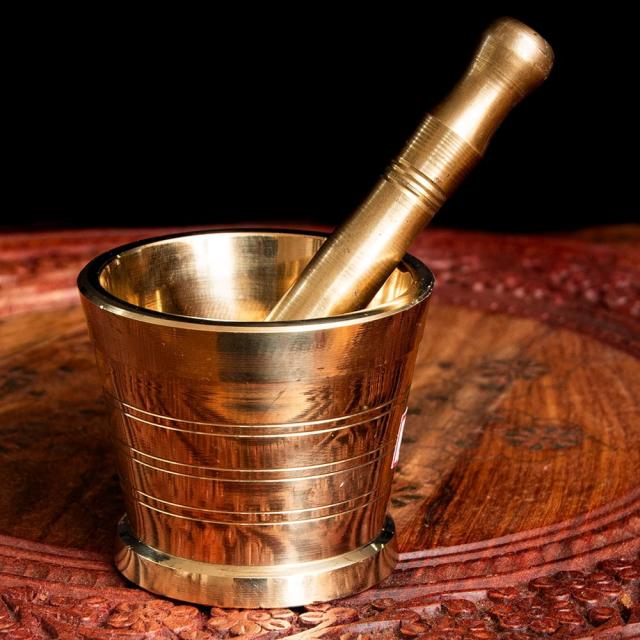 スパイスグラインダー [中] - 真鍮 / すり鉢、スパイス、グラインダー、グラインダー、カレー、すりつぶす、スパイスミル、乳鉢、インドカレー インド アジアの食材 【インドとアジアン食品・食材