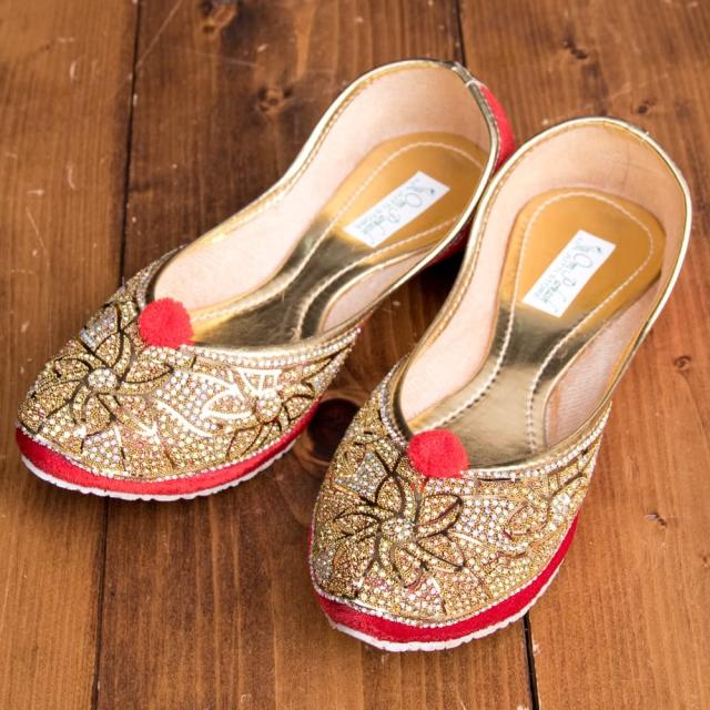 ゴージャス ラインストーンのマハラニフラットシューズ / パンプス 靴 ペッタンコ靴 インド TIRAKITA(ティラキタ) アジア サンダル レディース エスニック衣料 アジアンファッション エスニックファッション