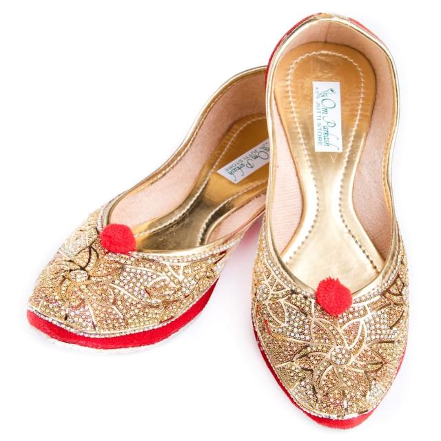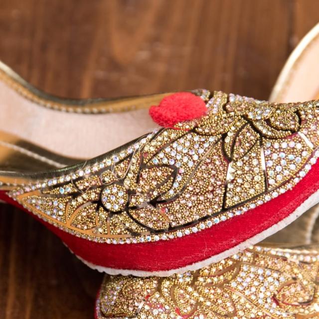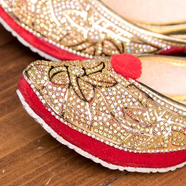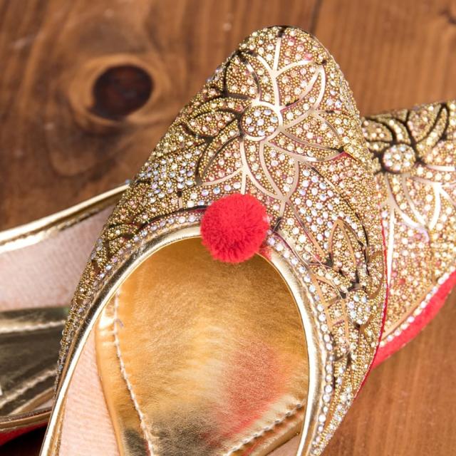 ゴージャス ラインストーンのマハラニフラットシューズ / フラットシューズ、パンプス、靴、ペッタンコ靴、インド 靴、サリー、クルティ、チュリダール、パンジャビドレス TIRAKITA(ティラキタ) エスニック衣料 【エスニック・アジアン衣料