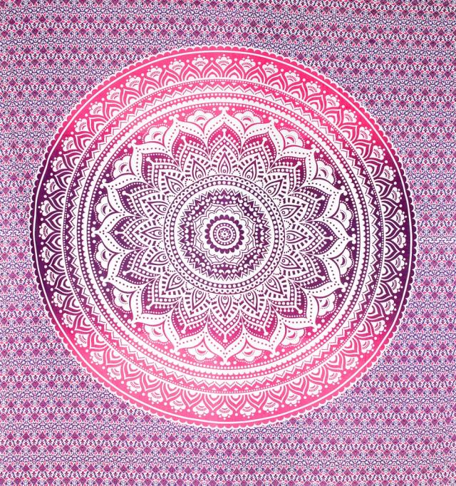 No.7:紫系〔各色あり〕マルチクロス - グラデーションマンダラ【約223cm×約205cm】 / マルチクロス ダブル、ベッドカバー、インド綿 布、ソファーカバー、テーブルクロス、バティック 布とファブリック 【インドとアジアンの布