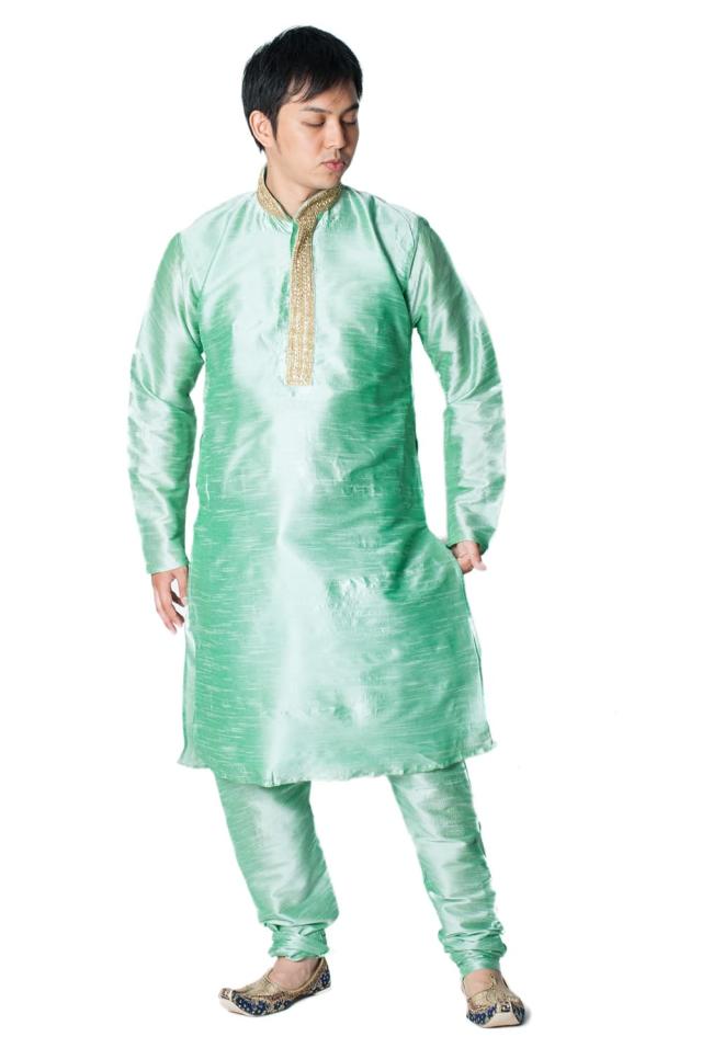 クルタ・パジャマ - ライトエメラルド【光沢生地ゴージャス】 / クルタパジャマ、Kurta、Pajama、男性、民族衣装 TIRAKITA(ティラキタ) エスニック衣料 【エスニック・アジアン衣料
