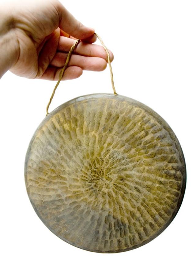 【送料無料】 ベトナムのゴング(銅鑼)約20cm / ドラ 鐘 ベル 民族楽器 インド楽器 エスニック楽器 ヒーリング楽器