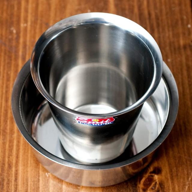 南インドのコーヒーカップとソーサーセット〔直径:約10cm〕 / カップ、コーヒー カップ、コップ、コーヒー、ステンレス 食器、コーヒー インド アジアの食材 【インドとアジアン食品・食材