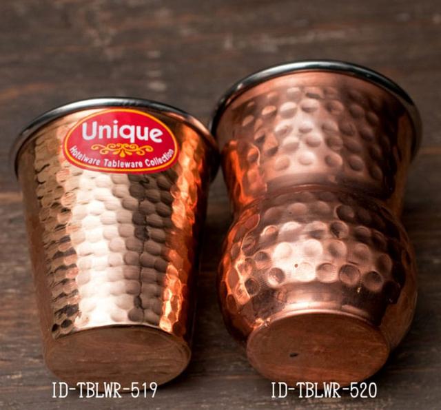 インドの鎚目付き銅装飾コップ【高さ:12cm×直径:8.8cm 約400ml】 / チャイカップ ステンレス 食器 グラス ラッシー マグカップ コーヒー アジアン食品 エスニック食材