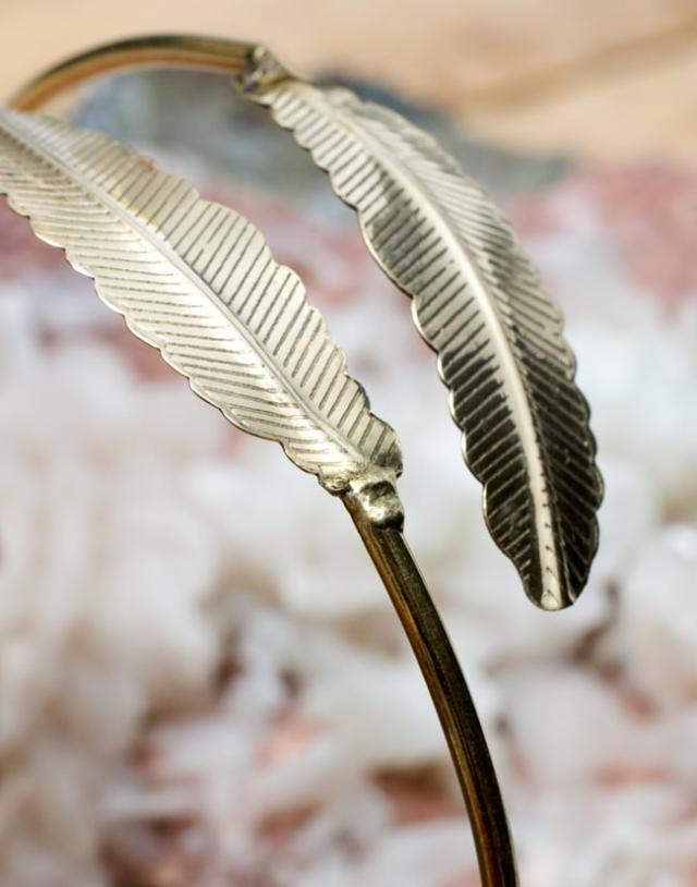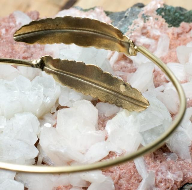 フェザーモチーフのメタルバングル / 羽 ブレスレット アクセサリー フリーサイズ アジア ネパール チベタン ストーン 天然石 真言 エスニック インド アンクレット ピアス リング ビンディー