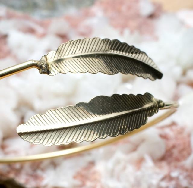 フェザーモチーフのメタルバングル / 羽、フェザー、ブレスレット、バングル、アクセサリー、フリーサイズ アクセ 【インドとアジアのアクセサリー