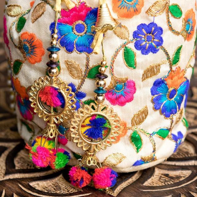 インドのきらきらミニバッグ・サリー等へオススメの巾着 フラワー更紗刺繍系 / ポトリバッグ、ハンドバッグ、インド バッグ、手提げ バッグ、サリー バッグ、パンジャビドレス バッグ、ラッピング袋、ラッピングバッグ、ギフト袋 バッグ 【インドとアジアンバッグ