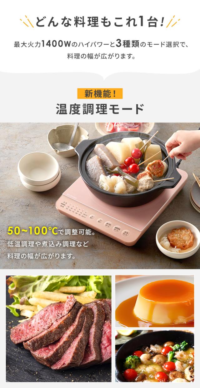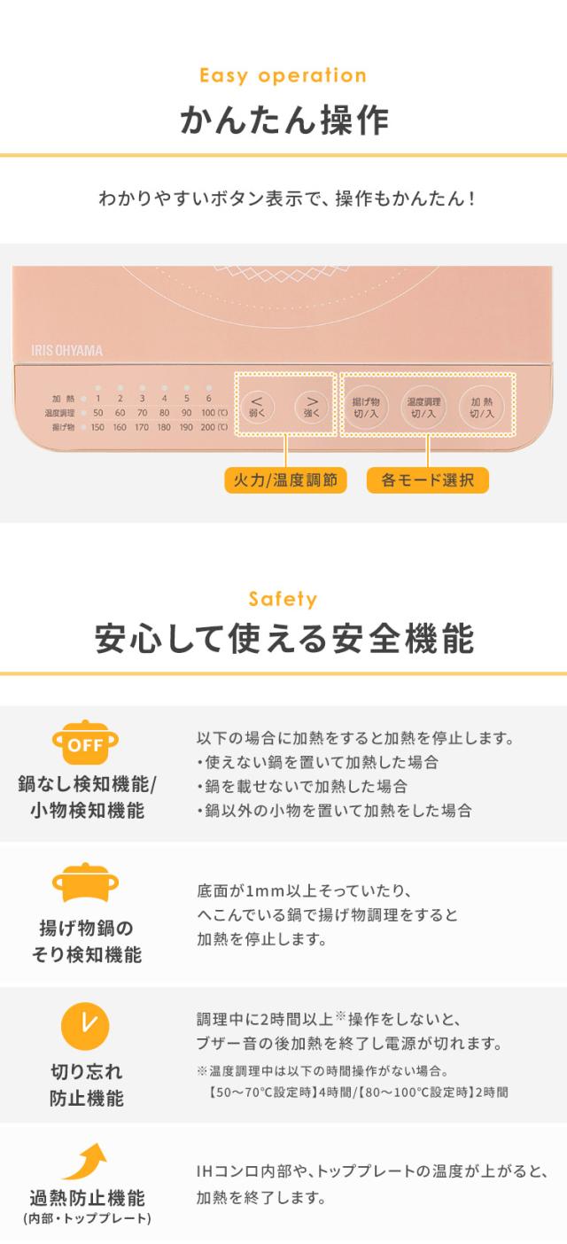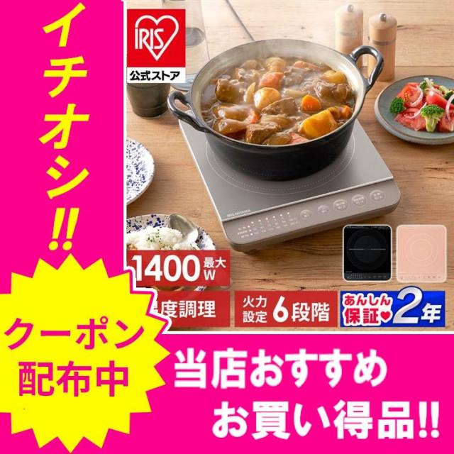 \1200円OFFクーポン!~3/11 9:59/IHコンロ 1口 IHクッキングヒーター アイリスオーヤマ 1400W 卓上 デザイン ピンク ブラウン ホワイト 安心延長保証対象