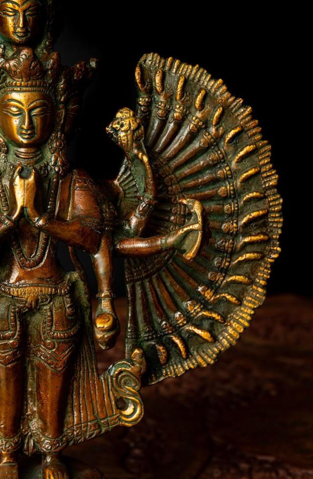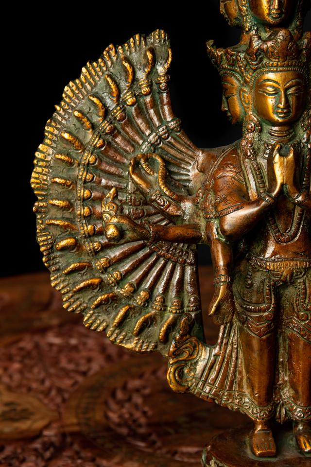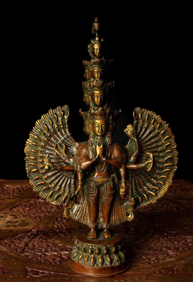 十一面千手千眼観音菩薩(サハスラブジャ) - 36cm / 銅造鍍金仕上げ、十一面千手千眼観音菩薩、サハスラブジャ、千手観音、仏像、神像、銅像 インドとアジア雑貨 【インドとアジアン雑貨