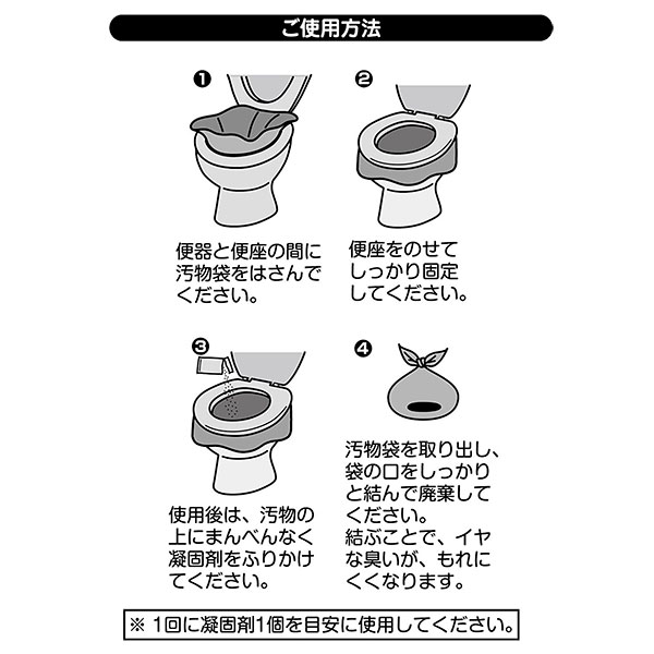 凝固剤で汚物をすばやく固めて、後は袋を取り出し廃棄できます。