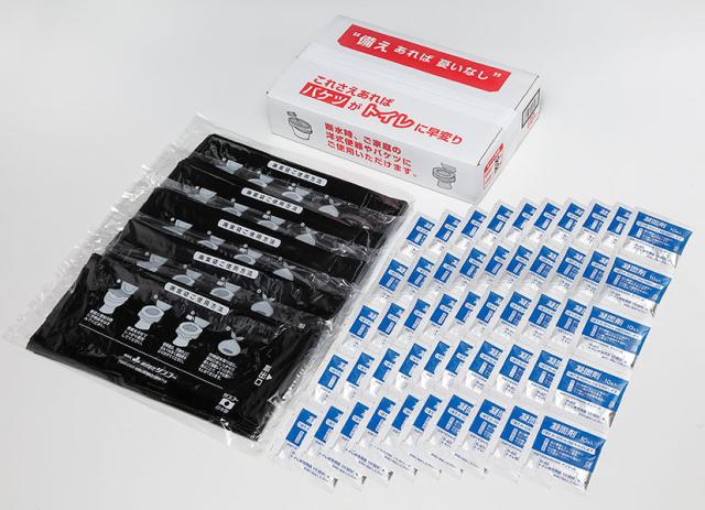 洋式トイレにセットして使う防災用トイレ袋 50回分です。