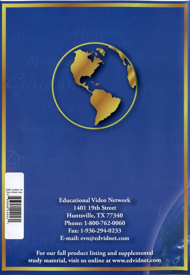 タージマハルの歴史を学べるDVD。インドでイスラームが台頭した歴史、タージマハル建設の秘密、インドのムスリムについて、歴史学の観点から見つめることができます。音声は英語です。