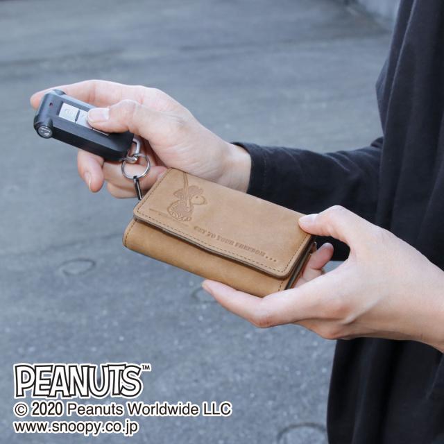 スヌーピー キーケース 4連 三つ折りキーケース 小銭入れ付き お財布機能付き 札入れ付き ミニ財布 おでかけ財布 財布 旅財布 セカンドウォレット 革小物 レザー PEANUTS FREEDOM フリーダム 本革 牛革 起毛革 アンティーク調