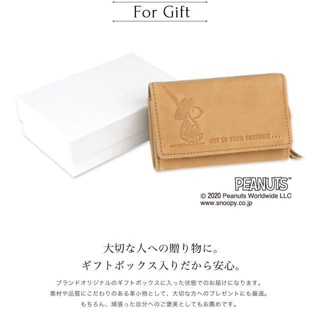 PR:SNOOPY スヌーピー 財布 キーケース 4連 三つ折りキーケース keycase 小銭入れ付き お財布機能付き ミニ財布 コンパクトウォレット お出かけ おでかけ お出掛け財布 札入れ付き ミニ財布 お出掛け財布 旅財布 セカンドウォレット 革小物 レザー かわいい シンプル キャラクター PEANUTS ピーナッツ FREEDOM フリーダム ナダヤ カウレザー 本革 牛革 起毛革 アンティーク調 経年変化 エイジング ユニセックス プレゼント ギフト クリスマス