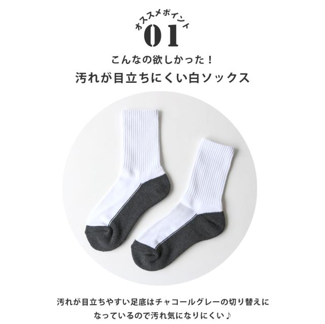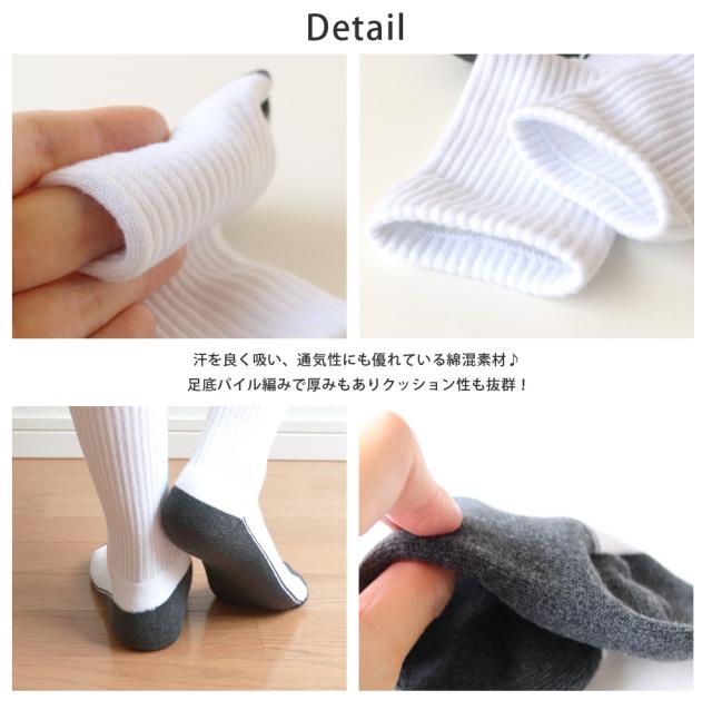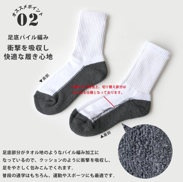 ◆タイプ:足底切り替え白靴下【足底パイル編み/クルー丈】
