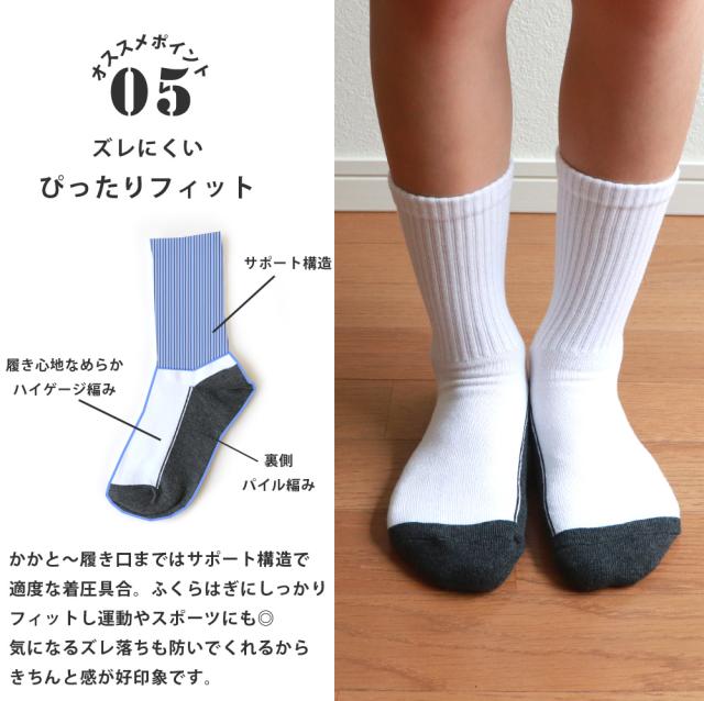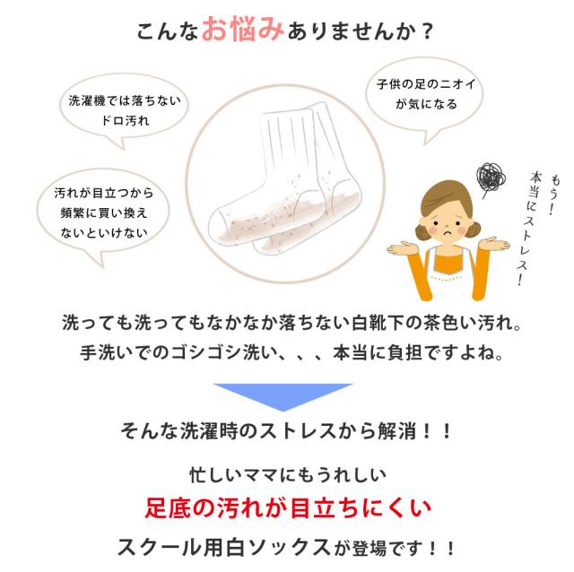 ●洗っても洗ってもなかなか落ちない白靴下の茶色い汚れ。手洗いでのゴシゴシ洗い、、、本当に負担ですよね。そんな洗濯時のストレスから解消!忙しいママにも嬉しい足底の汚れが目立ちにくいスクールソックスが新登場です! ●足底部分がタオル地のようなパイル編み加工になっているので、クッションのように衝撃を吸収し、 足をやさしく包みこんでくれます。運動やスポーツにも最適な履き心地です。 ●つま先・かかと補強で丈夫で長持ち!プラス消臭加工で足のニオイも気にならない! ●履き口は幅広リブで足首に しっかりフィット。ズレにくいから 運動やスポーツにも◎ ●靴を履いたら普通の白ソックスなので見た目も◎ |