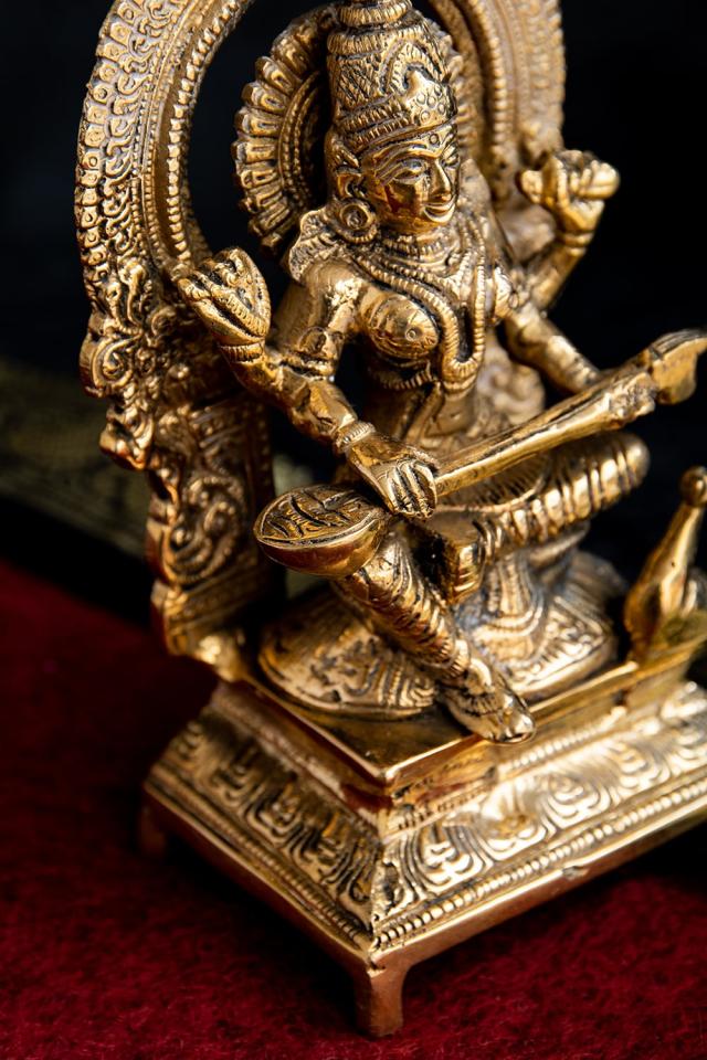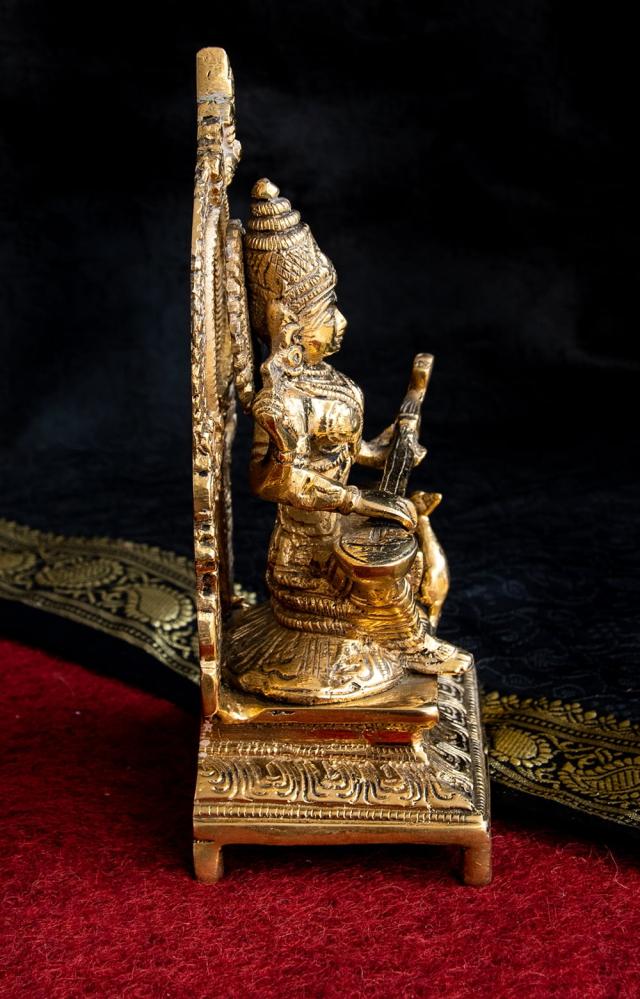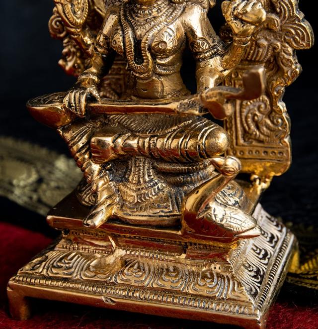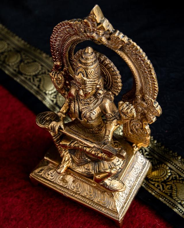 ブラス製 サラスヴァティ坐像- 19cm / サラスワティ、神様像、ヒンドゥ教、学問の女神 インドとアジア雑貨 【インドとアジアン雑貨