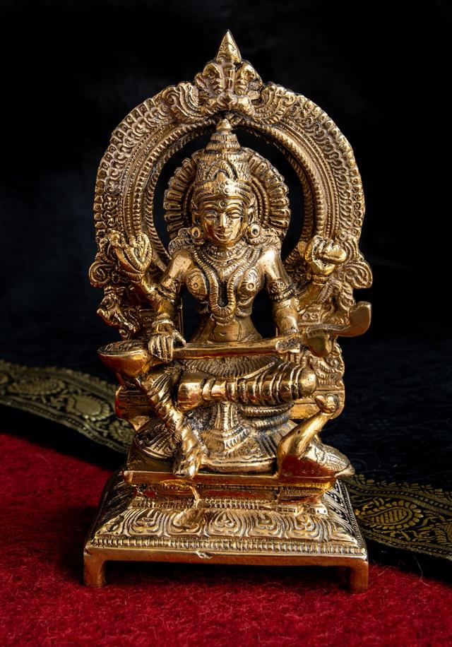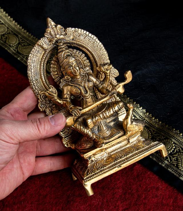 【送料無料】 ブラス製 サラスヴァティ坐像 19cm / サラスワティ 神様像 ヒンドゥ教 学問の女神 インド 置物 エスニック アジア 雑貨