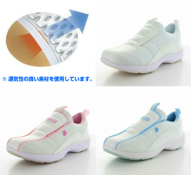 通気性の良い素材を使用した軽くて履きやすいナースシューズです。