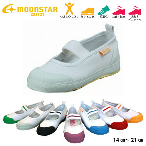 ムーンスター キャロット CR ST11 上履き 上靴 ゴムバンド 全7色 男の子 女の子 ハーフサイズ有り