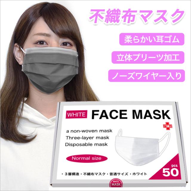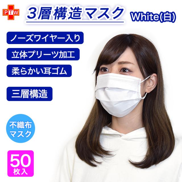 3層式不織布マスク 普通サイズ 50枚入