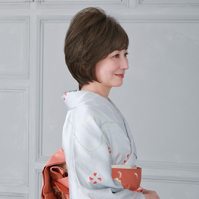 自毛をまったく見せずにスッポリかぶる「かつら」タイプのウィッグ。