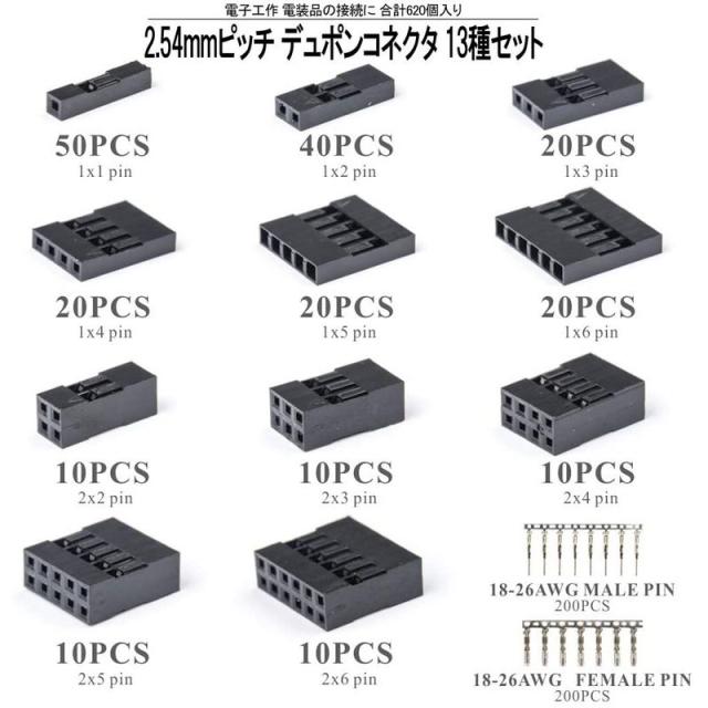 コネクター ハウジング メス2.54mm 1x1P 50個2.54mm 1x2P 40個2.54mm 1x3P 20個2.54mm 1x4P 20個2.54mm 1x5P 20個2.54mm 1x6P 20個2.54mm 2x2P 10個2.54mm 2x3P 10個2.54mm 2x4P 10個2.54mm 2x5P 10個2.54mm 2x6P 10個コンタクトピン メス 200個コンタクトピン オス 200個IWISSアイウィス「IWISS」はプライヤやペンチを主力とした工具類が販売され、ドイツやアメリカをはじめ、世界50か国以上で販売されているの人気ブランドです。発売されたオープンバレル用圧着ペンチやワイヤペンチがEUやアメリカのECサイトでベストセラーランキングで何度も1位になっている大ヒット商品です。高品質な材料から作られたそれらの製品はその精度と実績から高い信頼を得ています。2.54mmピッチ デュポンコネクタ 13種セットと圧着ペンチSN-28Bのセット商品です。コネクタセット内容 ・1×1P 50個 | ・1×2P 40個 | ・1×3P 20個 | ・1×4P 20個 | ・1×5P 20個 | ・1×6P 20個 ・2×2P 10個 | ・2×3P 10個 | ・2×4P 10個 | ・2×5P 10個 | ・2×6P 10個 ・オスピン 200個 | ・メスピン 200個コネクタ適合電線:26-18AWG 0.12-0.75sq圧着ダイス(3種類):0.1sq-0.25sq(28-24AWG)、0.25sq-0.5sq(22-20AWG)、0.5sq-1.0sq(20-18AWG)コネクタ入数:数量1で13種、合計620個セット