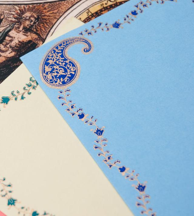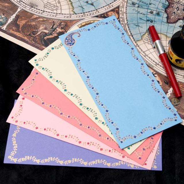 インドならではのデザインを美しい金色のペインティングによって施したレターグッズ。現地ではムンバイのセレブ向けに販売されていることもあって、とても品質の高い一品です。送って楽しく貰ってうれしい、そんなお手紙にぴったりですね!
