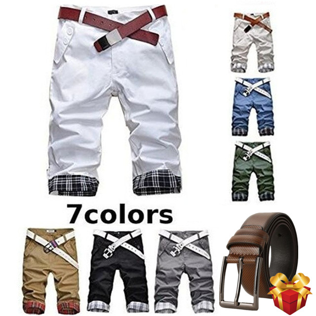 ★ベルトプレゼント ★ショートパンツカーゴパンツ チノパンチェック柄 半ズボンメンズ ボトムス 父の日 カジュアル 涼しい 夏 少しストレッチ 7分丈