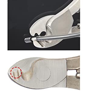 ケーブルの丸みに合わせたカーブ状の刃で巻き込みながら切断するのでケーブルが逃げず変形しないです。