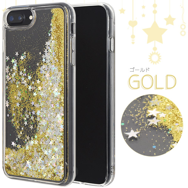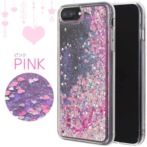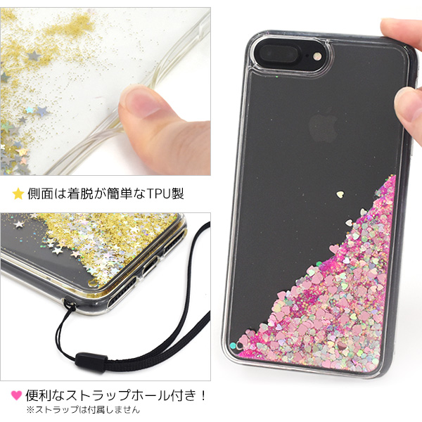 スマホケース iPhone7 Plus iPhone8 Plus用 きらきら揺れ動く たっぷりラメのトキメキソフトケース アイフォン TPU カバー ハート 星 ピンク ゴールド 可愛い