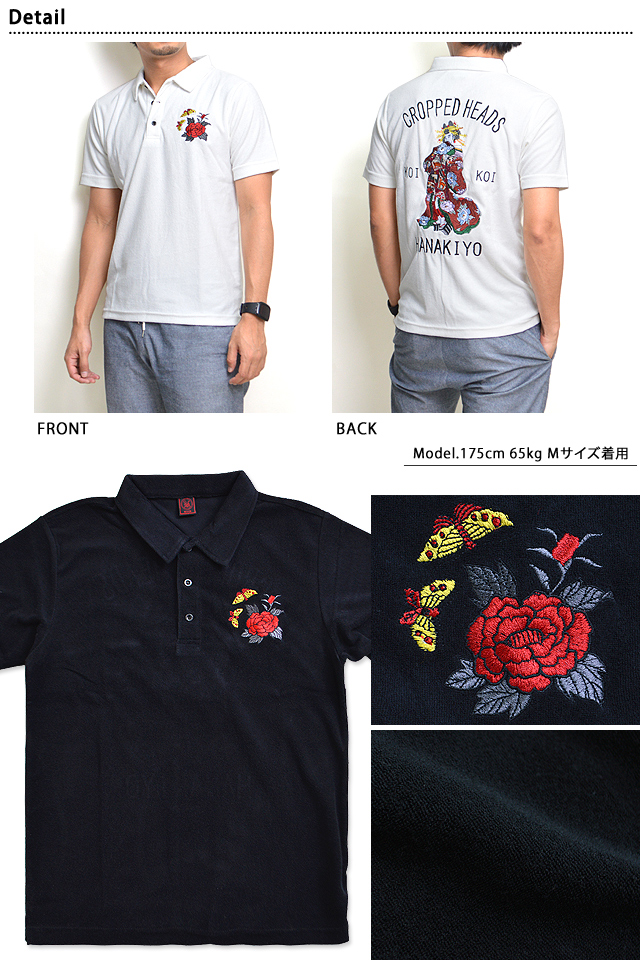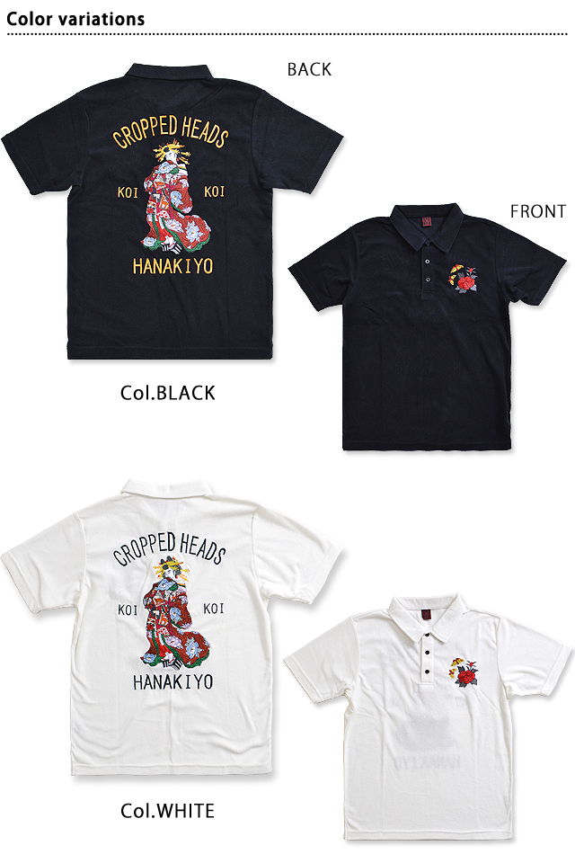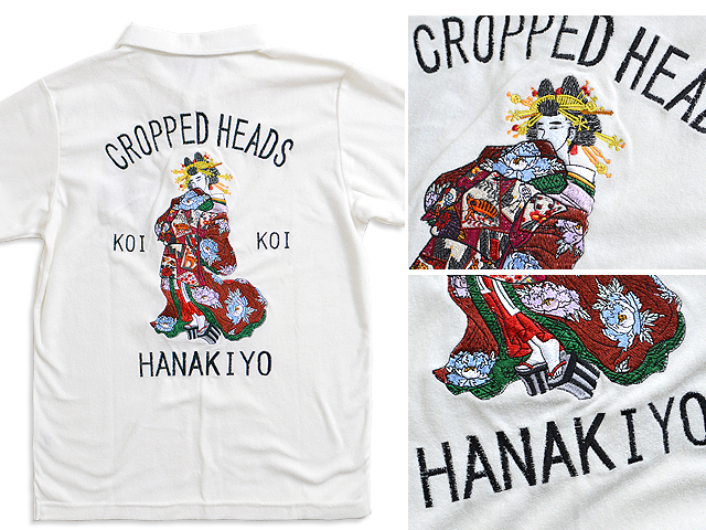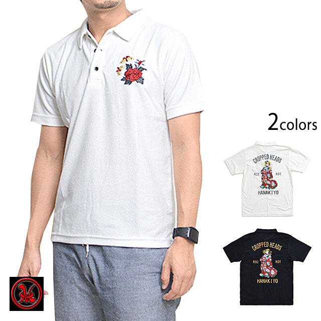 花魁博打パイル半袖ポロシャツ クロップドヘッズ 和柄 和風 CROPPED HEADS 刺繍
