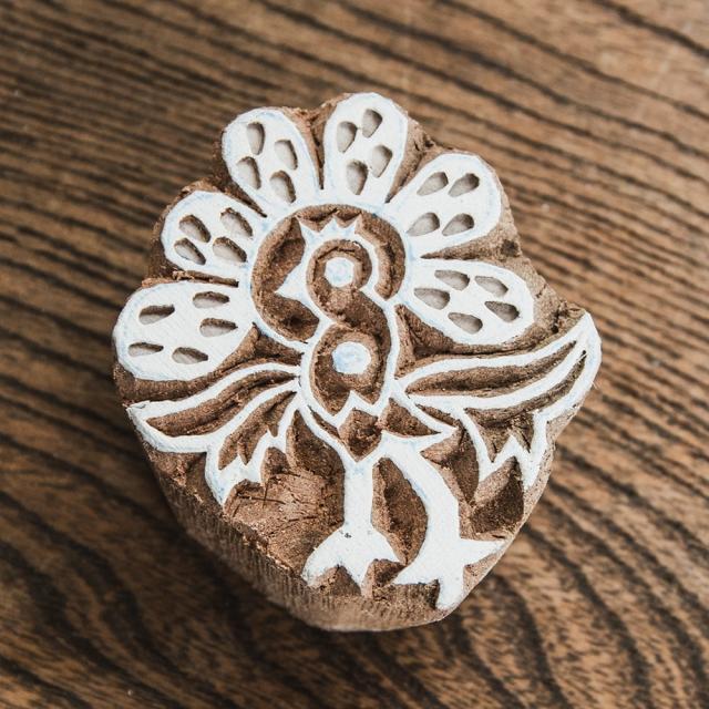 ウッドブロックスタンプ【鳥】約4.5cmx5cm / スタンプ、ウッドブロック、ウッドスタンプ、カーテン、インテリア、 インドとアジア雑貨 【インドとアジアン雑貨
