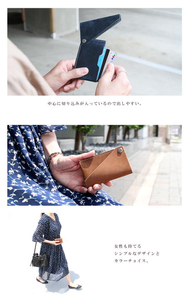 - デザインが良くて手触りも良いです。しかし実用性がありません。カードを入れても鞄の中で出てしまったりします。