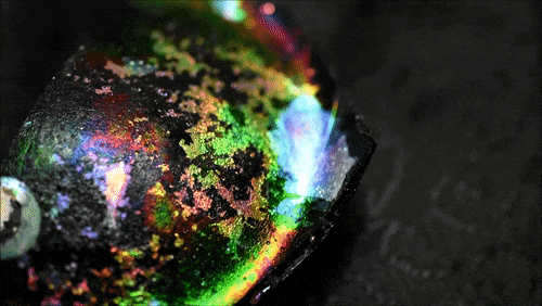 1000年、2000年もの間、土の中で眠り続けてきたガラスは、徐々に化学変化を起こし、その表面にキラキラとした光沢をまとうようになります。これは銀化と呼ばれる現象で、ガラス成分が土に含まれる銅や、鉄、マグネシウムなどの成分と長い時間の間に化学変化を起こします。土の中に埋蔵されている時間が長くなるにつれて、銀化した層が多くなり、色も多層に、光の反射も複雑になり、綺麗になっていきます。