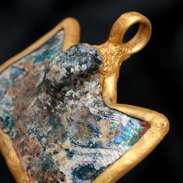 人の手では作ることができない、ただ、悠久の時だけが作ることが出来る貴重なガラスを、一つ一つ、一品物のペンダントにしました。